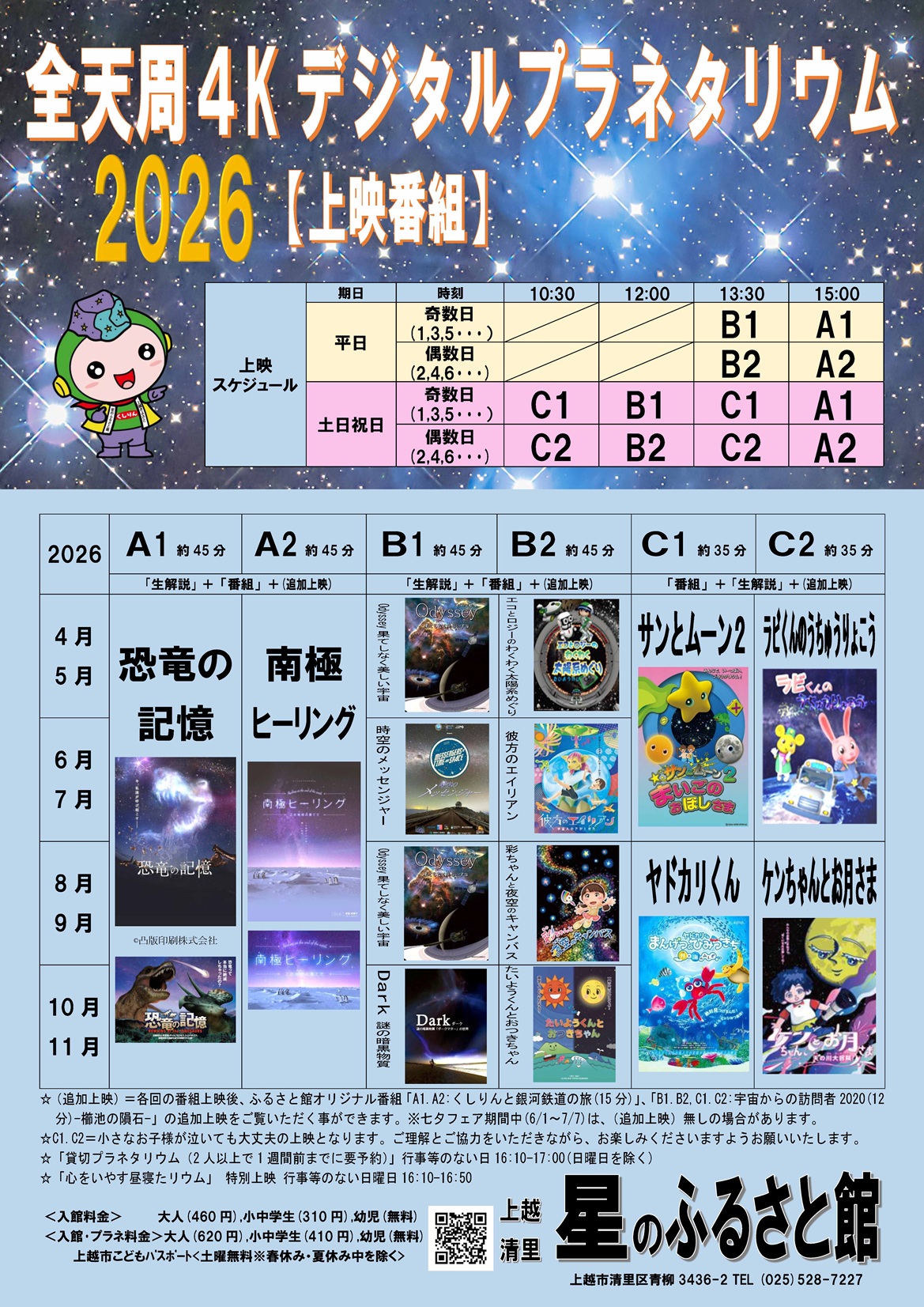 ・入館料(大人 460円、小中学生 310円)のみの方は、プラネタリウムの鑑賞はできません。